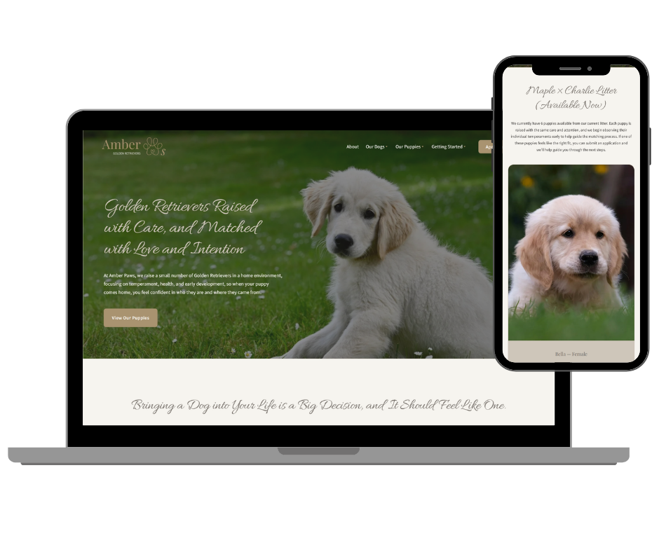Amber Paws Retrievers needed a website that felt as thoughtful and grounded as their breeding philosophy, one that would immediately build trust while simplifying what can often feel like an overwhelming and uncertain process.