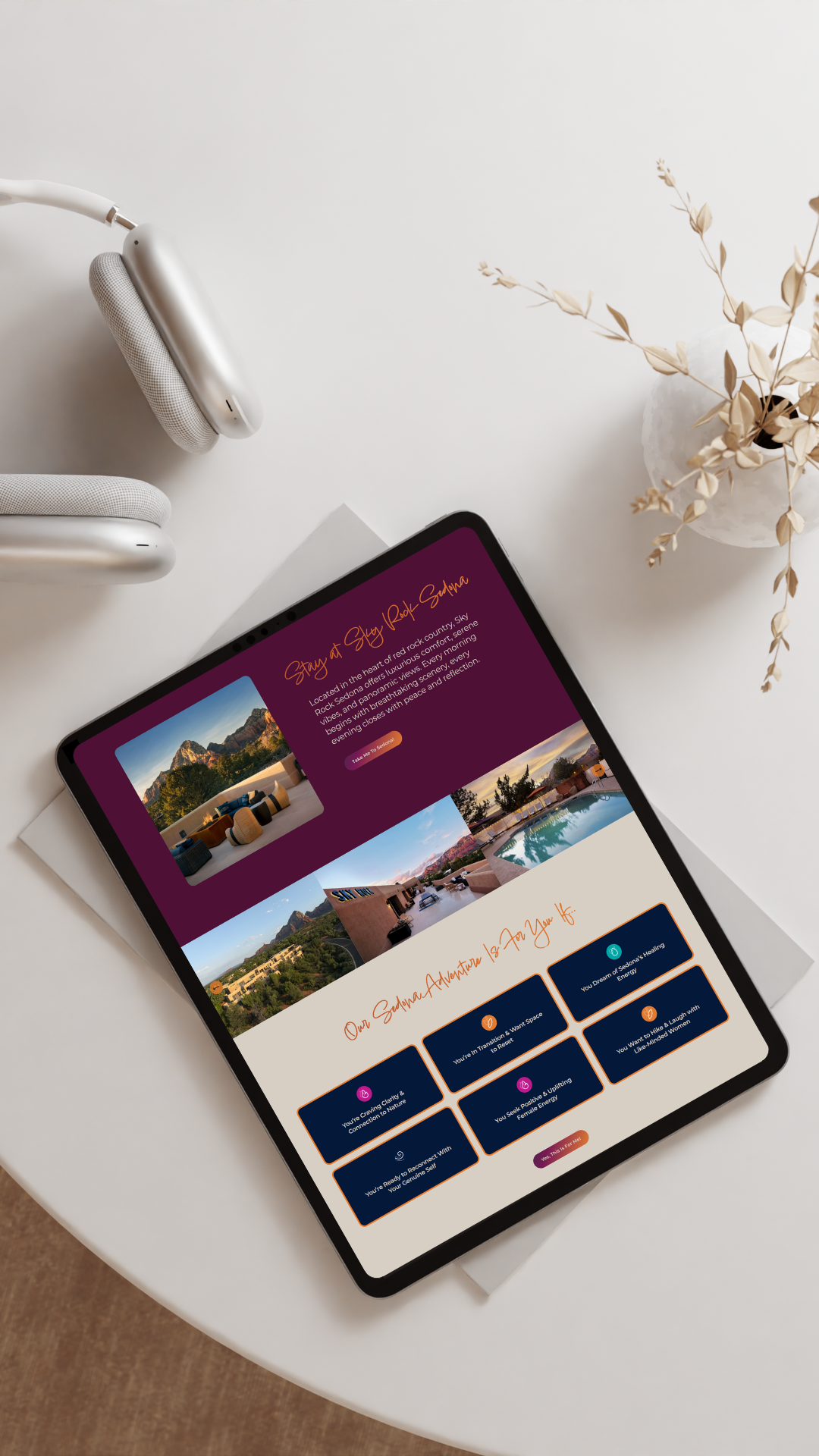 I designed a custom Squarespace website that blends evocative storytelling with grounded structure. Rich imagery of Sedona’s landscapes sets the tone, while carefully paced content guides visitors through the experience — from intention and connection to practical details and booking. Retreat pages feature clear itineraries, inclusions, and expectations, supported by warm design, intuitive navigation, and streamlined calls-to-action. Fully responsive design ensures the experience feels just as immersive on mobile as it does on desktop.
